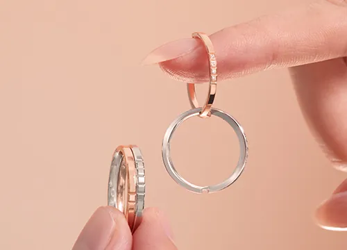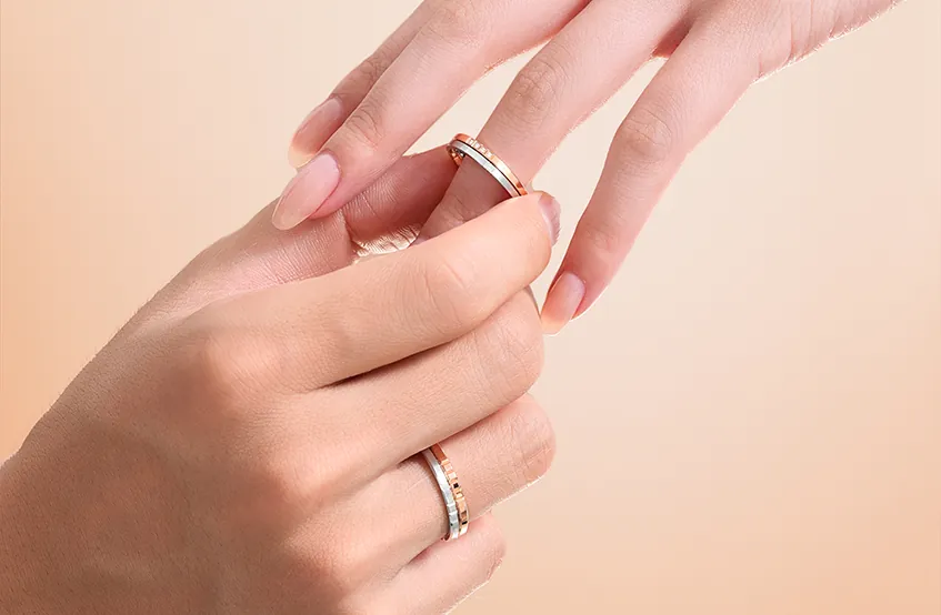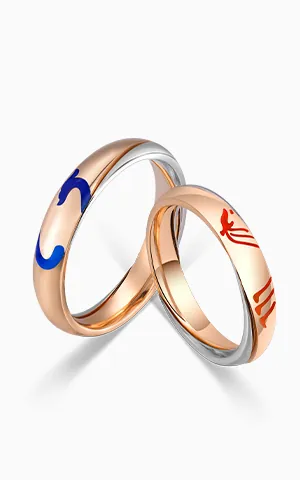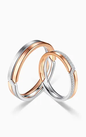 两枚如流线般交织的分戒, 在爱意中流转,相拥,一生相爱相守……